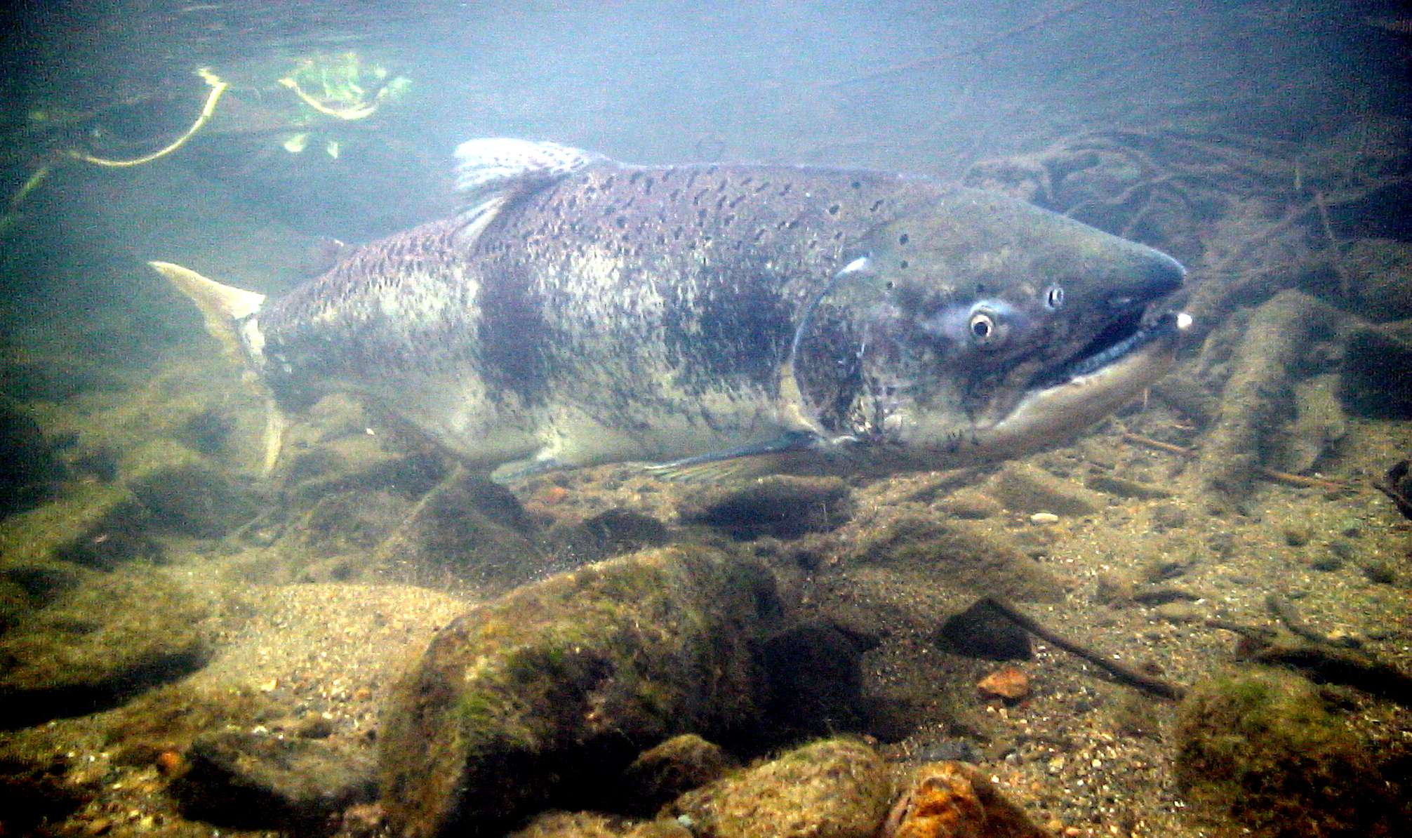 A returning adult Chinook Salmon in spawning colors. These fish typically spawn in the fall, with activity peaking during the first noteworthy storms of the year.